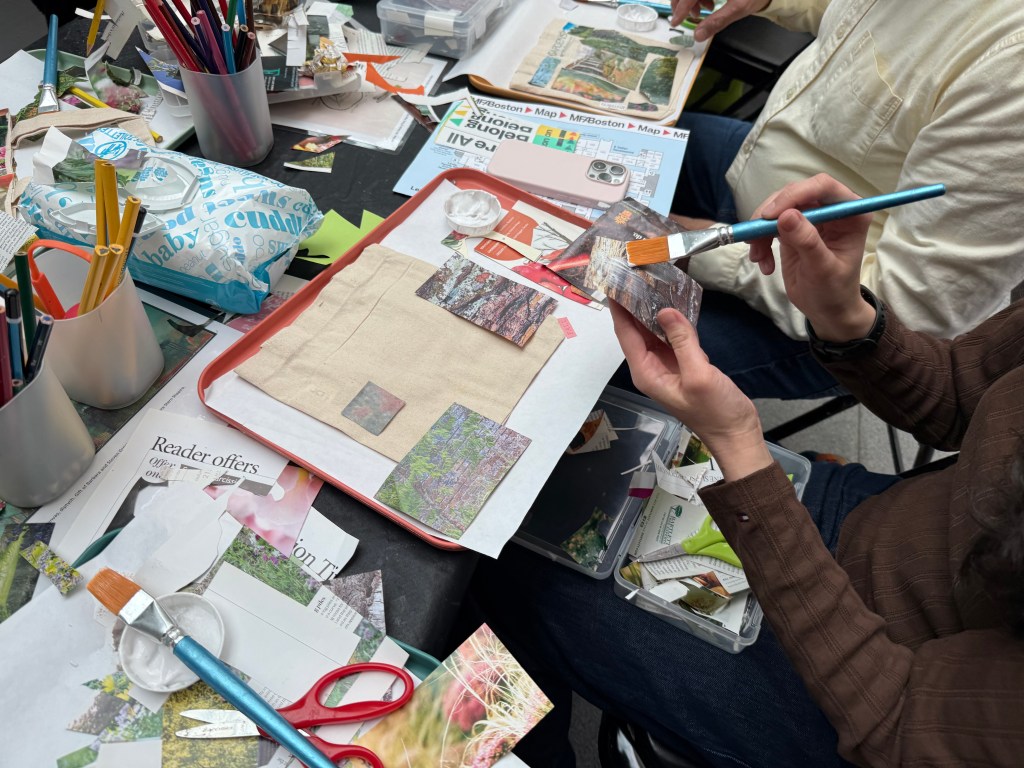Young and old alike enjoyed the creativity of collage making as we capped off the day with a delicious meal at the Museum Cafe. Standing by was Dale Chihuly’s glass sculpture. A gray New England Sunday turned into a golden memory.